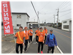 綿打行政センターを発着に新田地域を総勢84人の参加者が歩いたり、走ったりしてたすきをつなぎました。